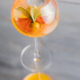 Cóctel de frutos amarillos muy bien acompañados de la Gin Malfy Arancia, refrescante y dulce, con 1976 ocean, toronja deshidratada y uchuvas.
